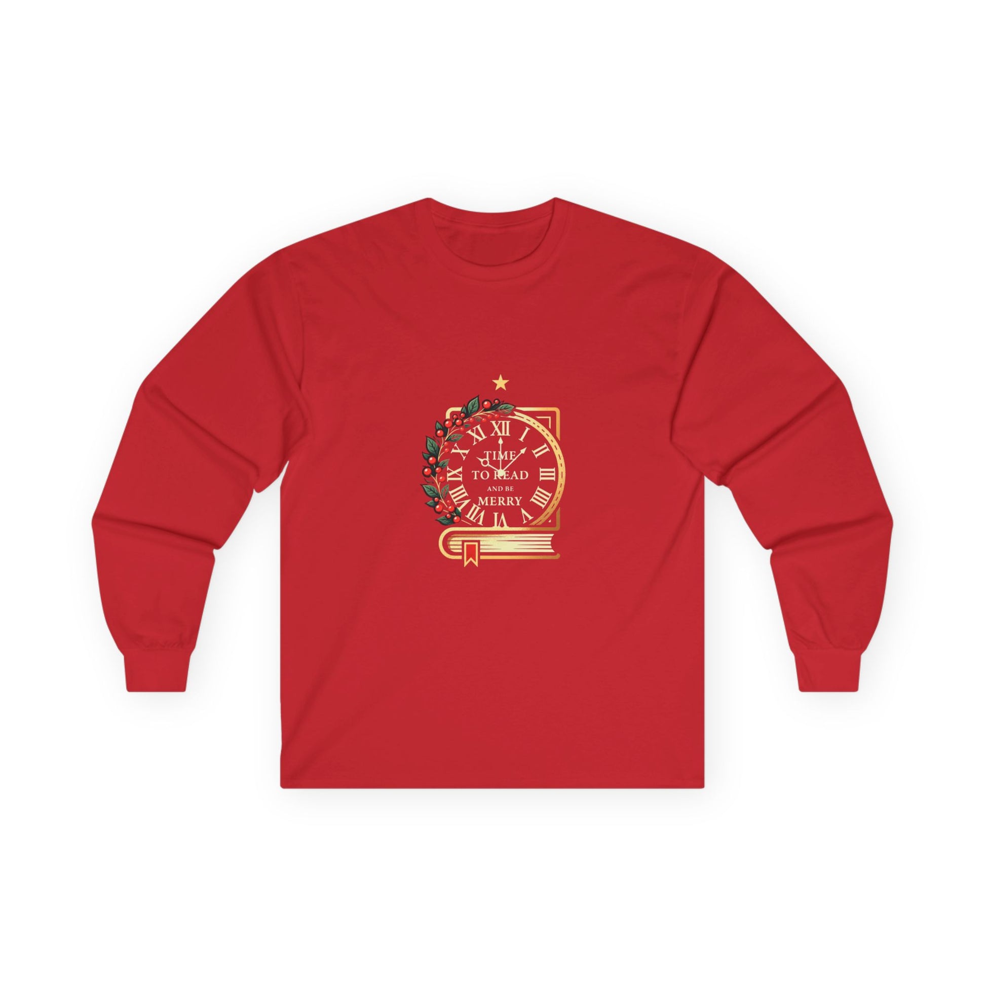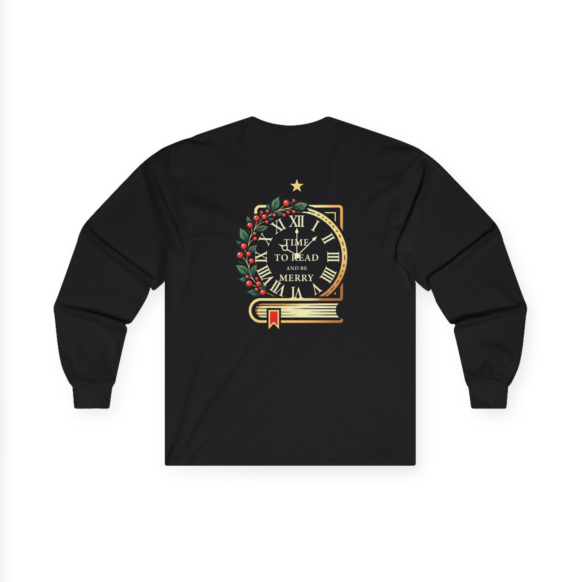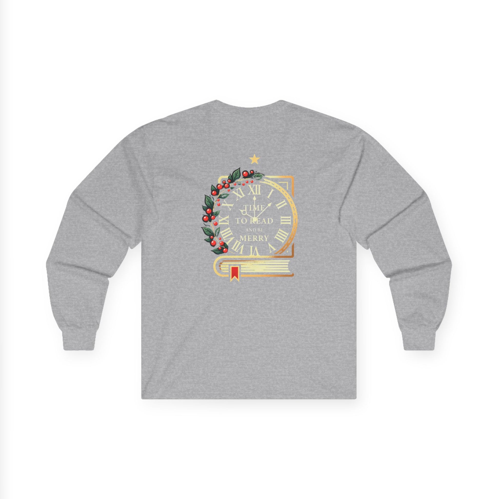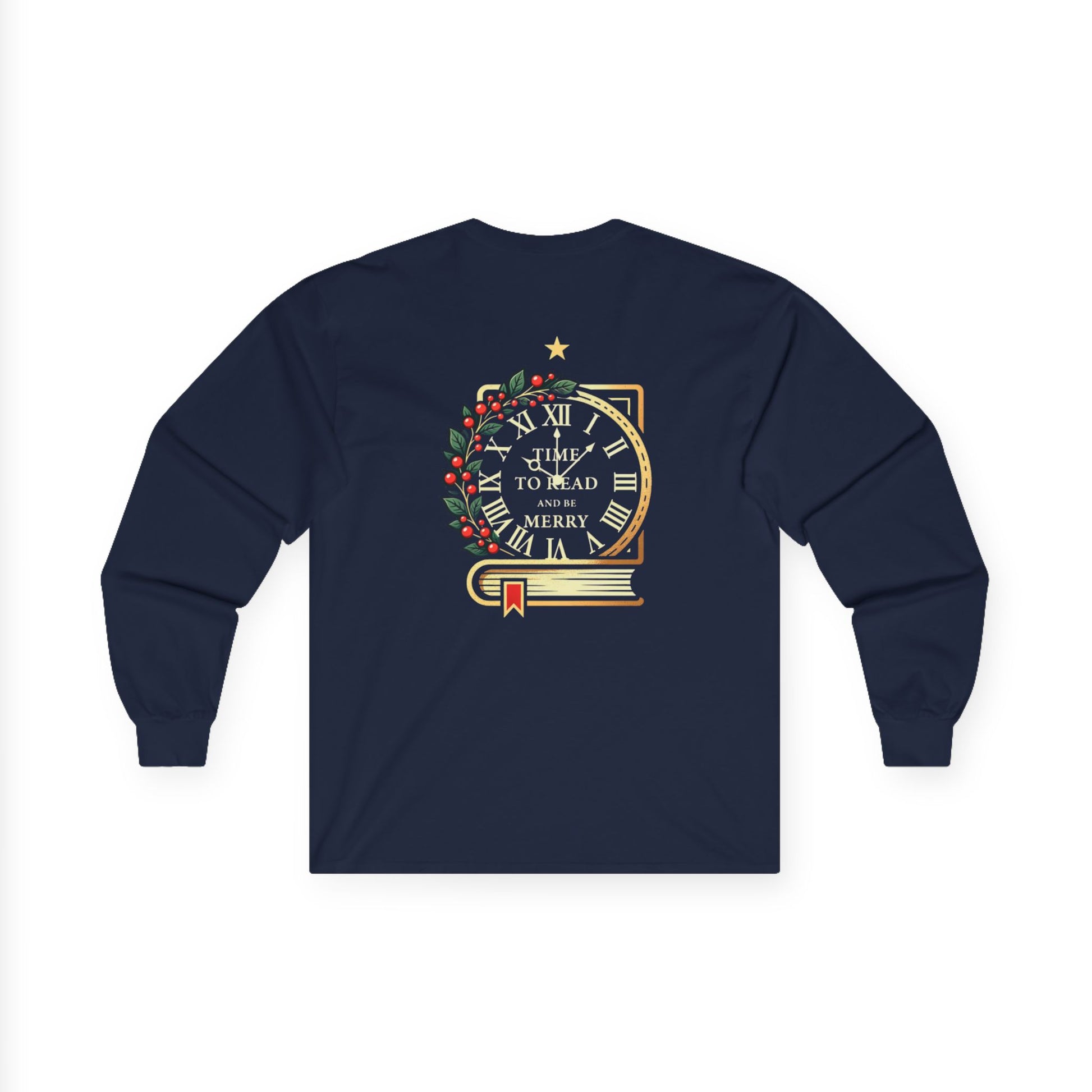 Christmas Clock & Wreath Long Sleeve Tee — "Time to Read Merry" Holiday Shirt