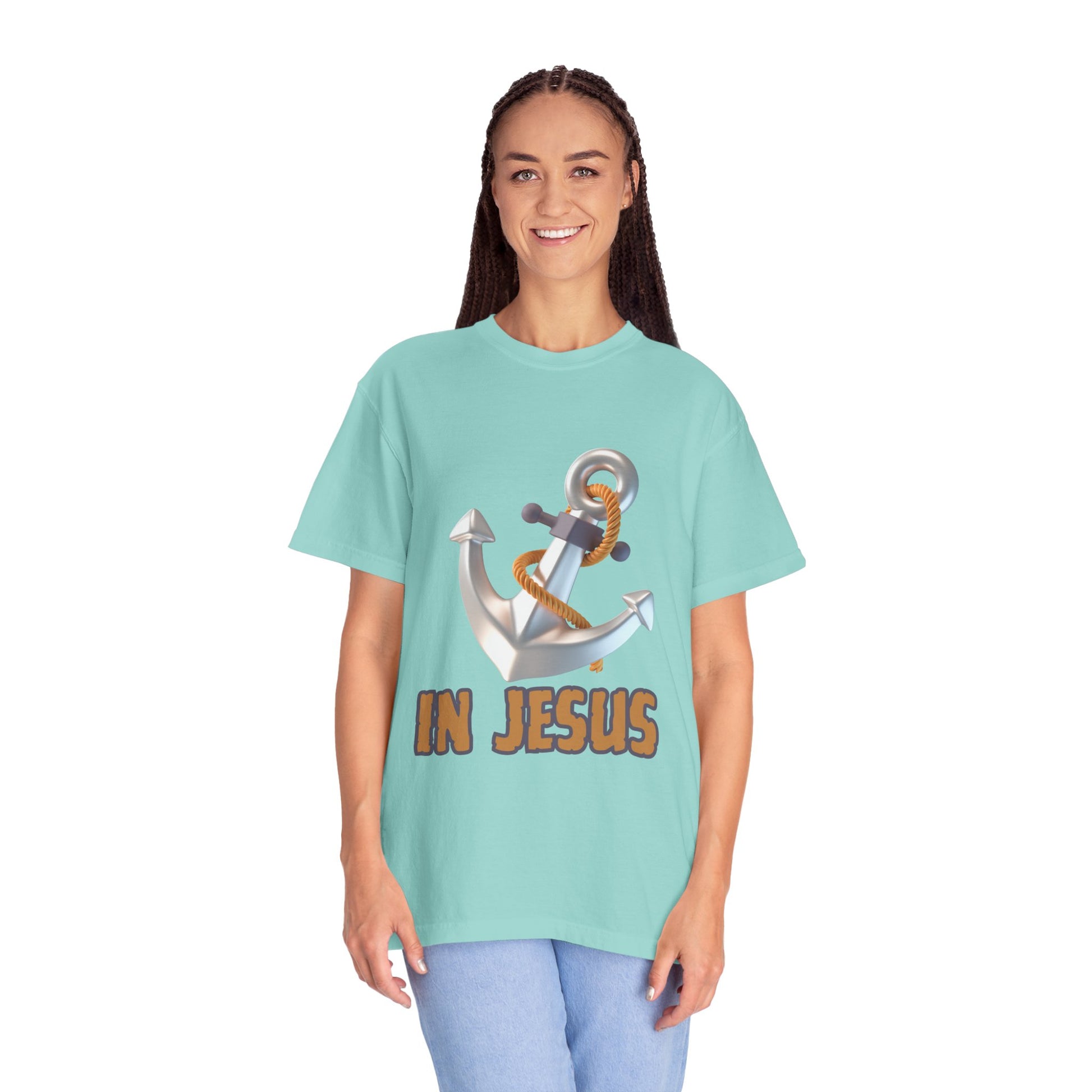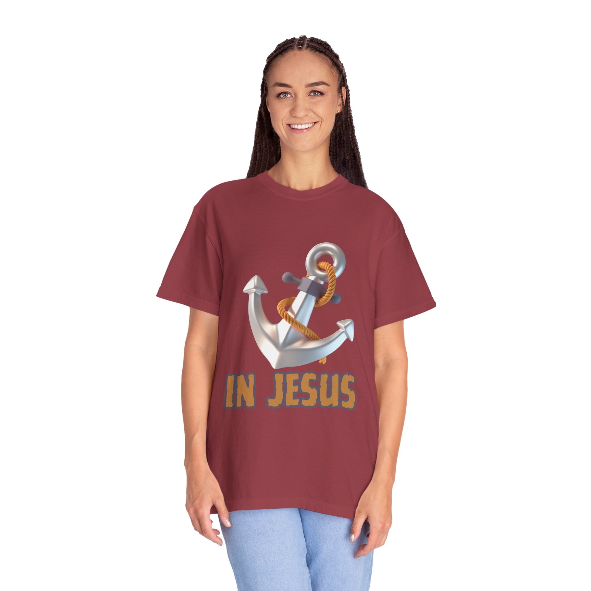 Faith-Inspired Unisex Garment-Dyed T-Shirt | 'In Jesus' Anchor Design