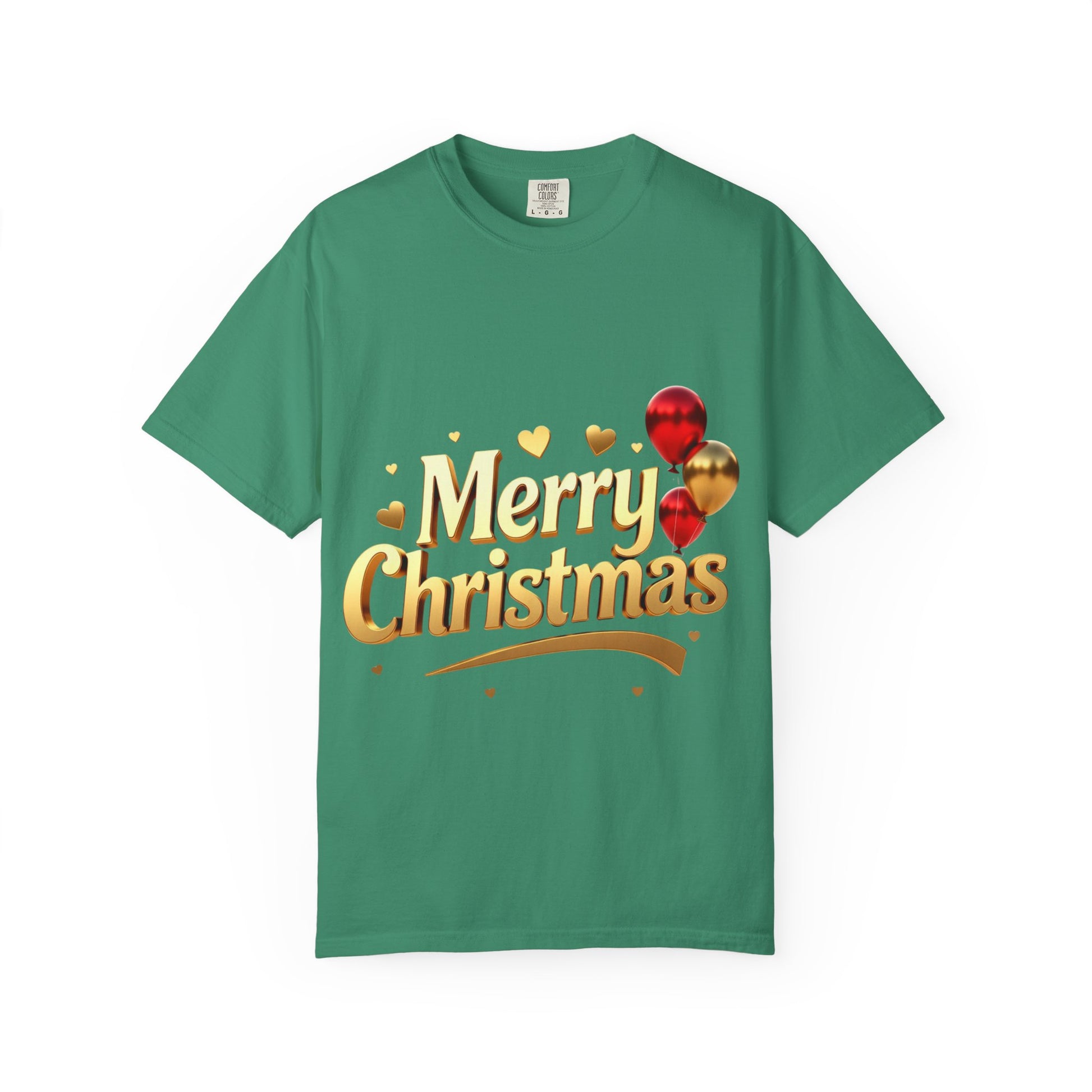 This heavyweight garment-dyed tee brings warm, low-key holiday cheer without shouting. The soft, broken-in cotton and relaxed fit feel lived-in from the first wear; a subtle gold "Merry Christmas" design with red and gold ornament accents sits low on the chest, catching light and adding a quietly festive touch. Wear it at home while wrapping presents, to a casual family dinner, or out for a slow winter walk — it layers easily under a cardigan or over a long-sleeve. The tubular knit and double-needle seams mean the shirt stays comfortable and holds its shape through many washes, while the garment dye gives each piece a slightly unique, vintage wash. Available across a wide range of sizes and colors, this tee suits people who like holiday style that’s understated, tactile, and lived-in.